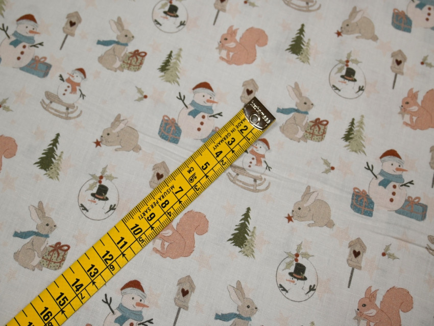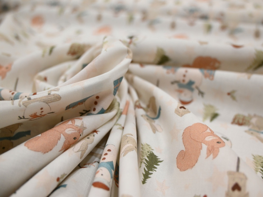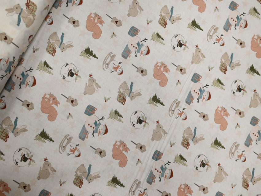Este adorable popelín de algodón 100% de 110 g/m² tiene un encantador estampado invernal con animalitos, muñecos de nieve y paisajes navideños. Su suavidad y ligereza lo hacen ideal para confeccionar ropa infantil, decoración navideña o detalles festivos para el hogar, aportando un toque de dulzura y calidez a cualquier proyecto.