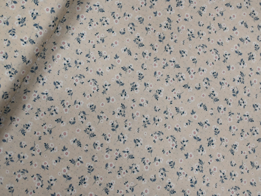 El popelín 100% algodón de 110 gr/m2 es una tela suave, ligera y fresca que se adapta a una gran variedad de usos. Su delicado estampado floral en tonos suaves sobre un fondo neutro lo hace ideal para confeccionar prendas como blusas, vestidos, camisas infantiles o ropa de verano.