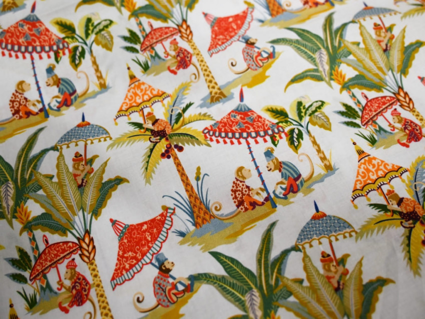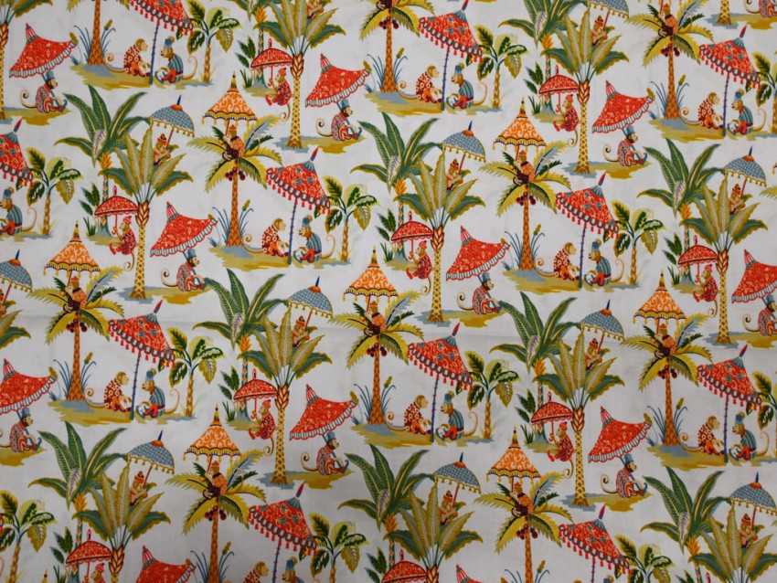 Exuberante popelín 100% algodón con un estampado tropical que evoca paisajes llenos de color y alegría.