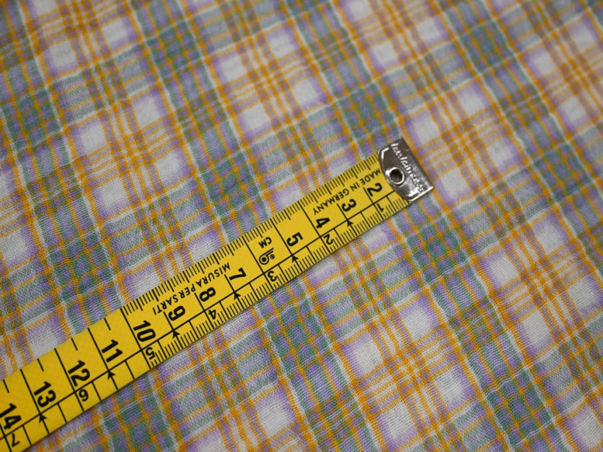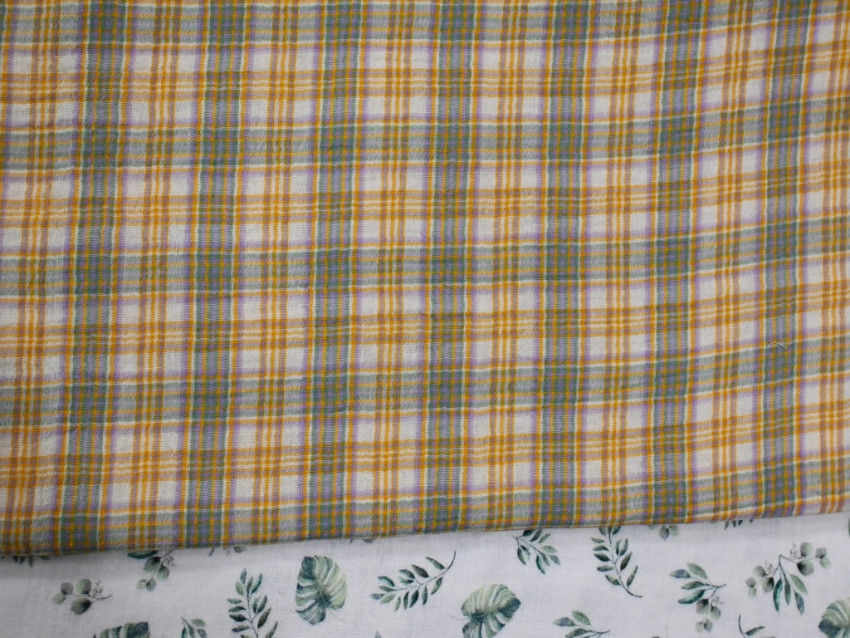 Nuestra muselina de algodón 100%, con un gramaje de 125 gr/m² y 140 cm de ancho, es un tejido ligero y transpirable que destaca por su suavidad y frescura. Su diseño de cuadros en tonos amarillos y lavanda aporta un toque original y alegre, perfecto para proyectos que combinen estilo y funcionalidad.