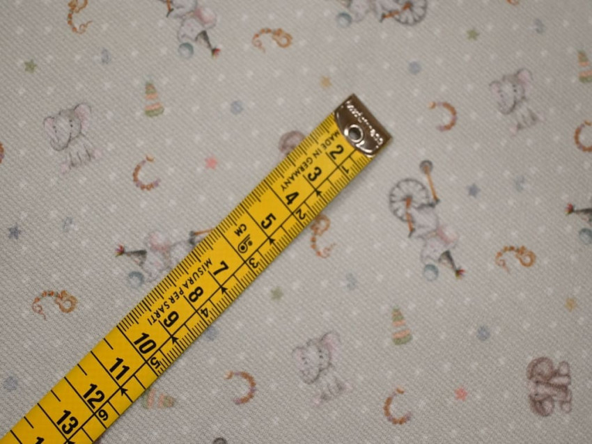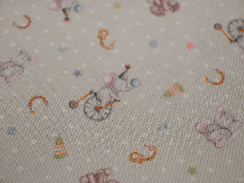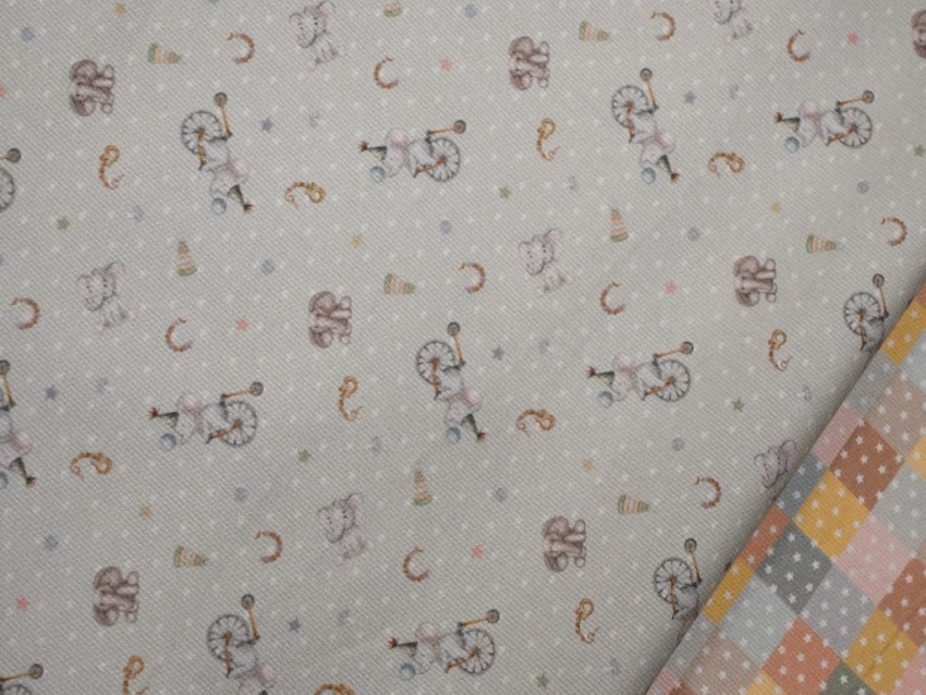 Su tierno diseño infantil con elefantes y detalles de circo en tonos pastel es perfecto para confección de ropa, sábanas y accesorios de bebé. Suavidad, transpirabilidad y confort en un tejido de alta calidad.