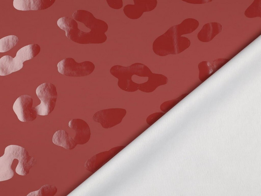 El estampado irregular con efecto animal en distintos tonos de rojo genera profundidad visual y dinamismo, convirtiendo este tejido en una opción ideal para proyectos creativos que buscan diferenciarse.