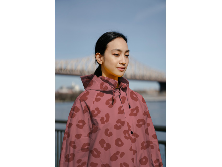 Esta tela impermeable estampada en tono rojo con acabado brillante es un tejido técnico de alta calidad diseñado para la confección de prendas exteriores resistentes, funcionales y con un marcado carácter estético.