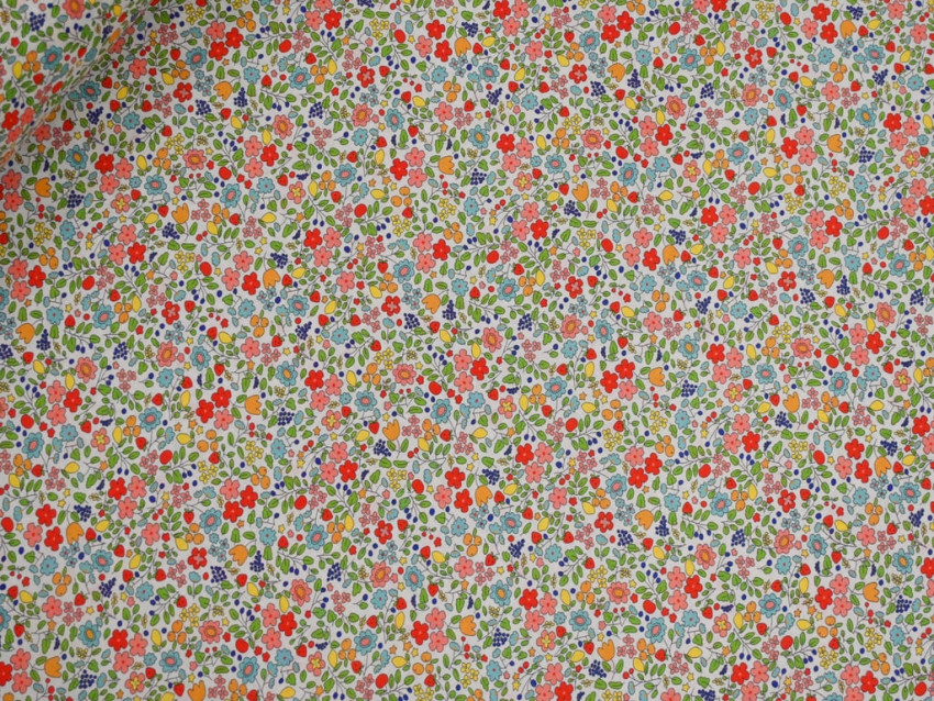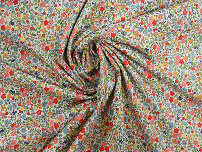 Voile 100% algodón de 90 g/m² con delicado estampado floral multicolor. Ligero, fresco y con caída suave, ideal para prendas veraniegas, infantiles y proyectos delicados.