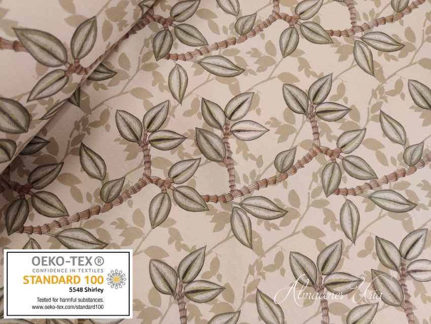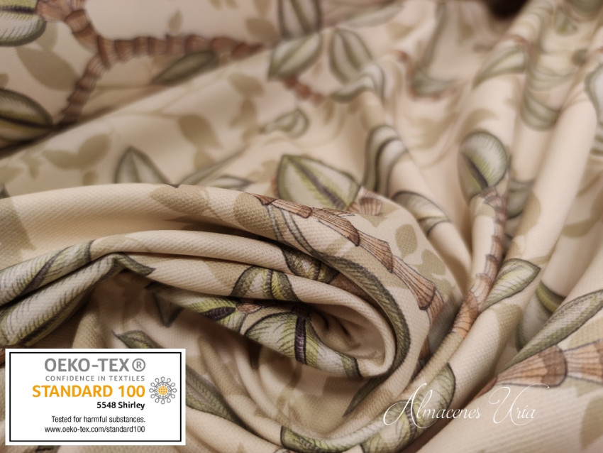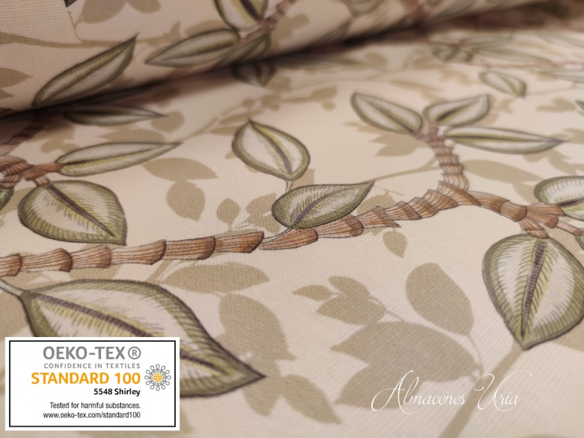 Loneta estampada de algodón, con cuerpo, rigidez y tacto suave.
