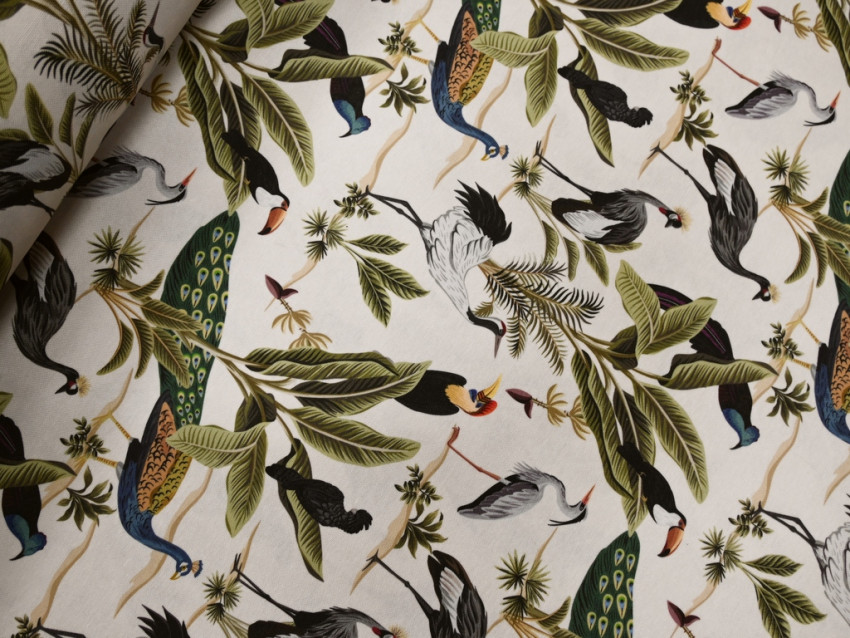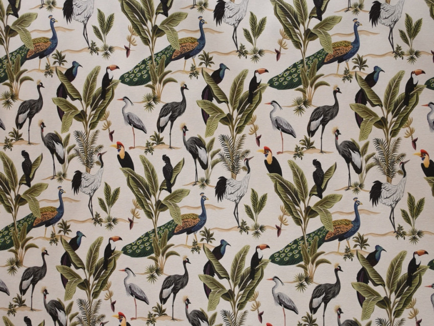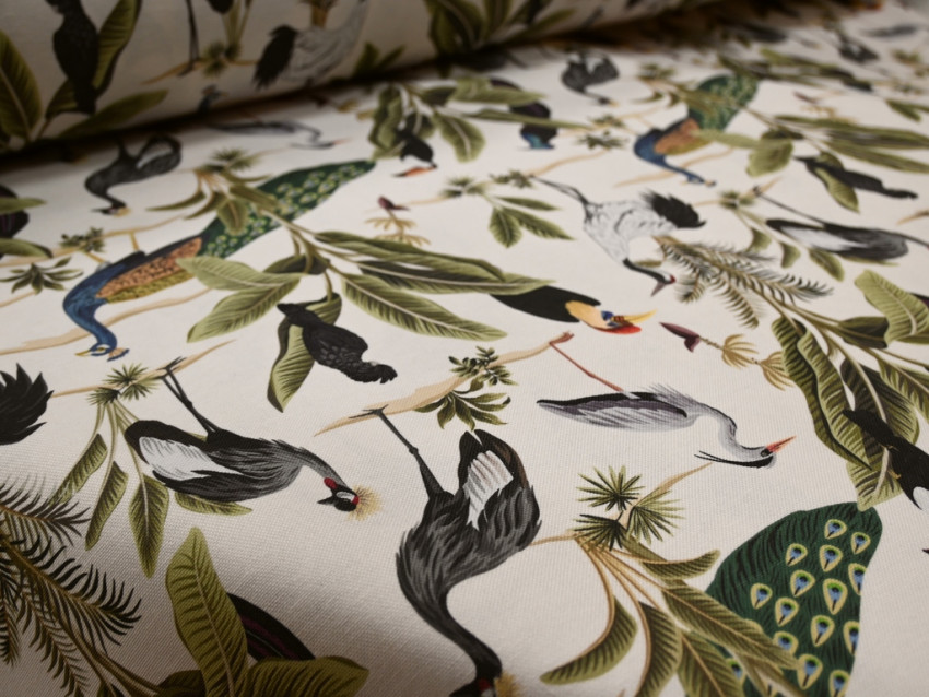 Loneta decorativa 100% poliéster - 280 cm de ancho - Estampado de aves exóticas
