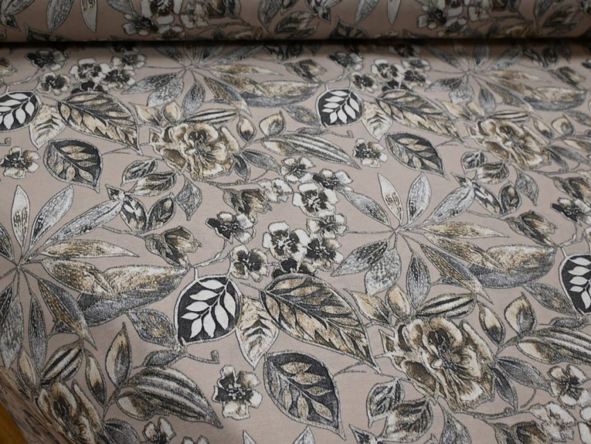 Nuestra loneta estampada de 280 cm de ancho combina la resistencia del poliéster con la suavidad y transpirabilidad del algodón, logrando un tejido duradero y de fácil mantenimiento. Su diseño floral en tonos neutros aporta un toque de elegancia y sofisticación, ideal para proyectos de decoración y tapicería.