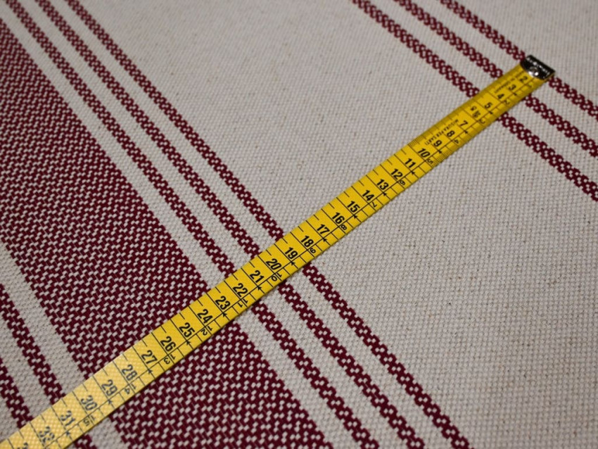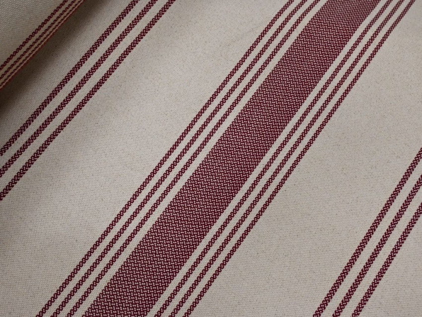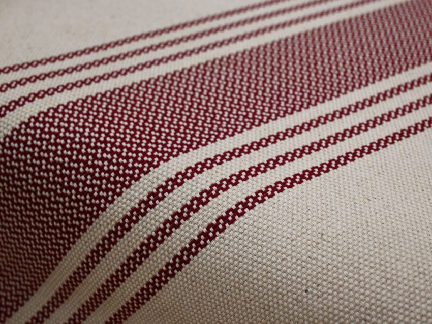 Lona rústica de 97% algodón y 3% lino, con 280 cm de ancho y rayas en la dirección de la trama.
