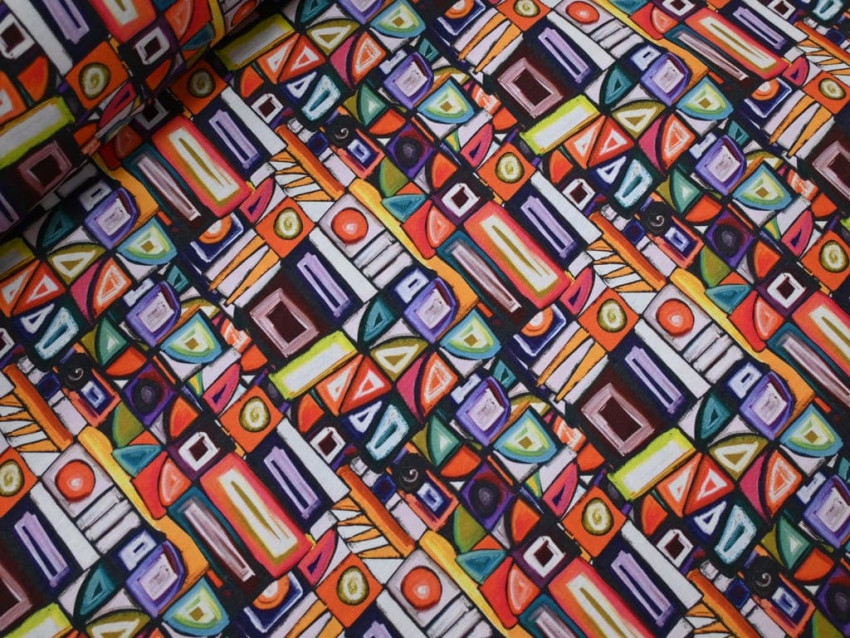 Esta loneta estampada digital es una apuesta por la modernidad y la energía visual. Con un diseño basado en figuras geométricas coloridas y contrastadas, esta tela es ideal para proyectos de decoración que buscan destacar por su creatividad, dinamismo y originalidad. Su composición mixta de 50% poliéster y 50% algodón ofrece un equilibrio perfecto entre resistencia, durabilidad y comodidad al tacto.
