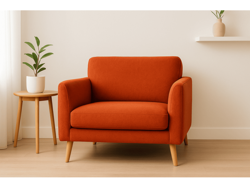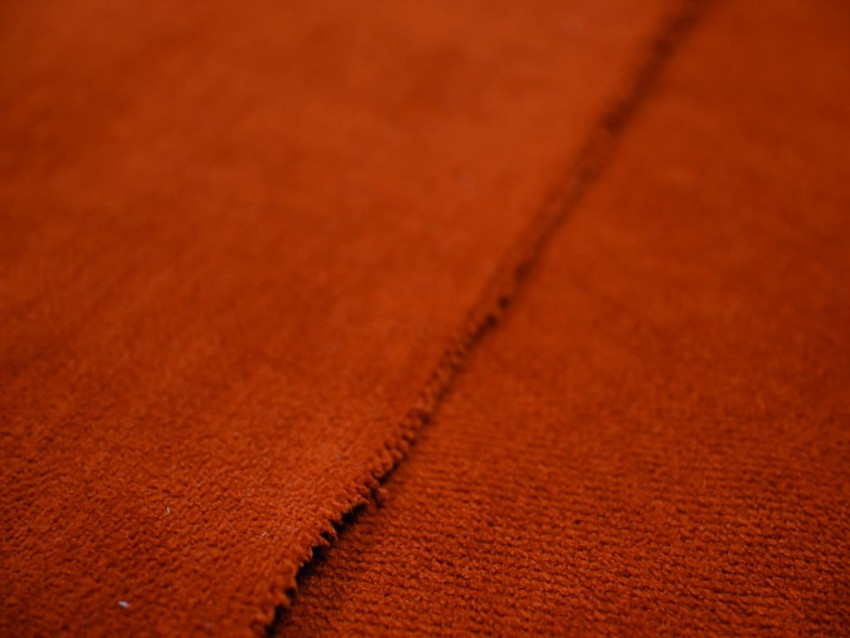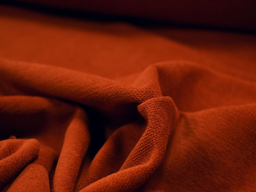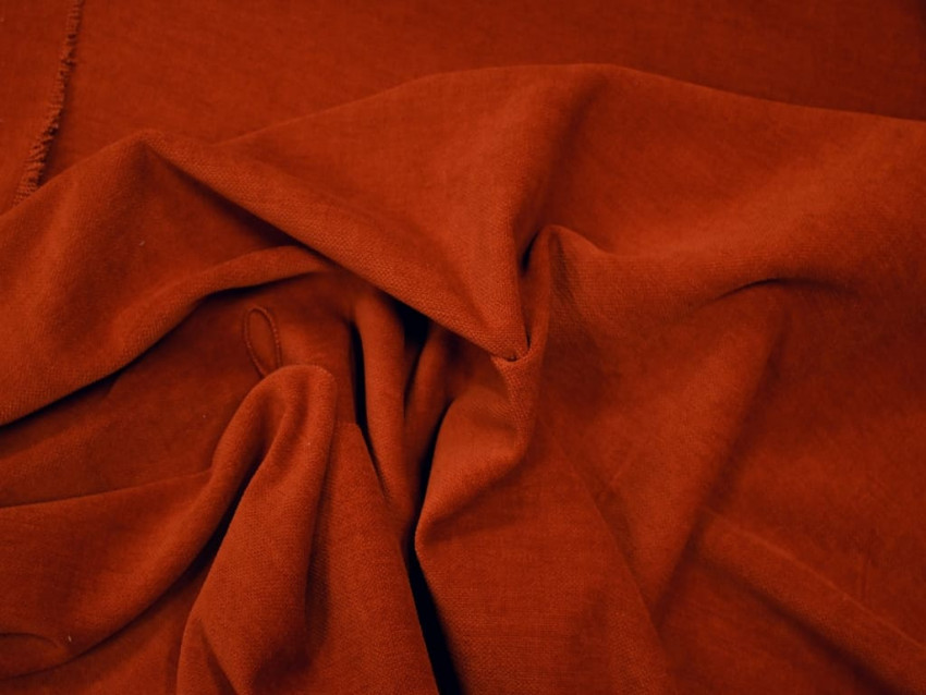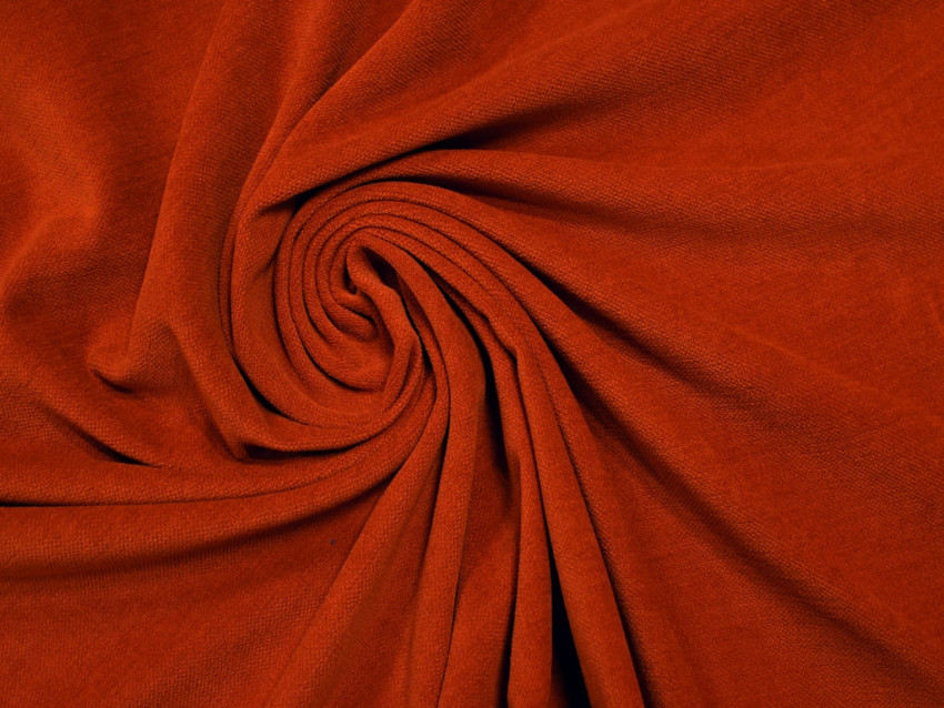 El terracota caldera aporta fuerza y calidez mediterránea. Micro-chenilla de pelo muy corto con tacto peach-skin mate y compacto. Caída controlada: tapiza curvas y planos sin arrugas.