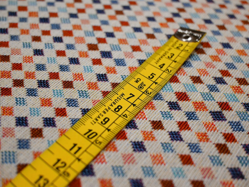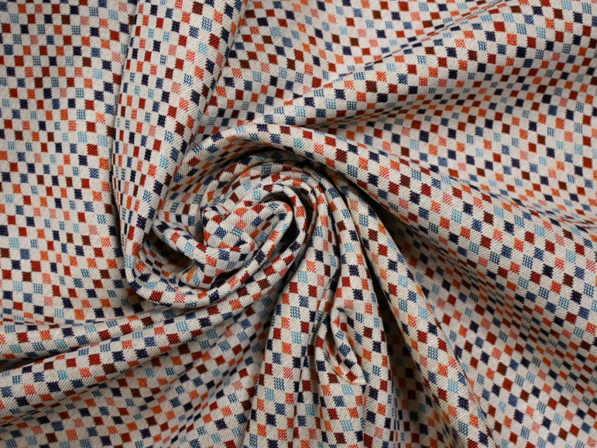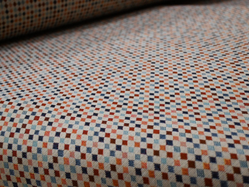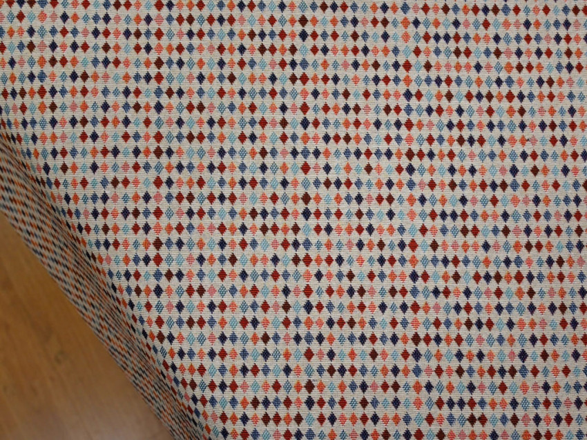 Gobelino decorativo de 280 cm de ancho con estampado de mini rombos en tonos cálido.