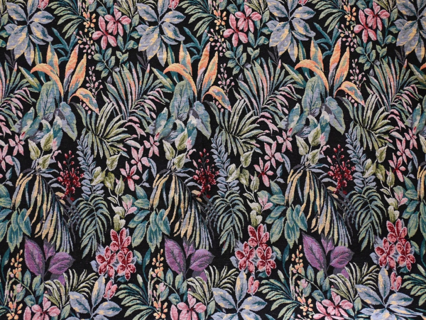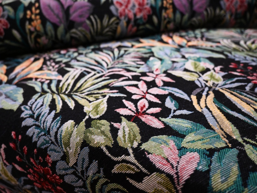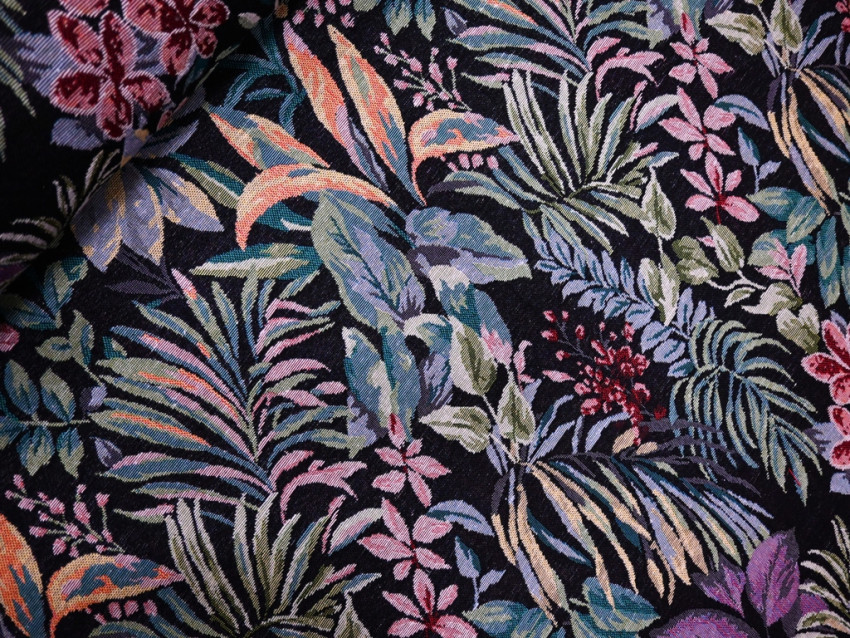 Este gobelino con estampado tropical de 330 g/m² es perfecto para confeccionar chalecos de trajes regionales. Con un ancho de 140 cm, su resistencia y diseño único lo hacen ideal para resaltar prendas típicas.