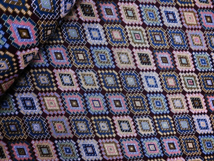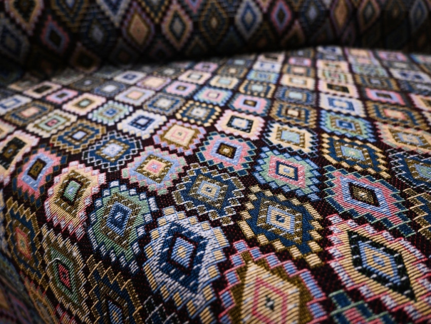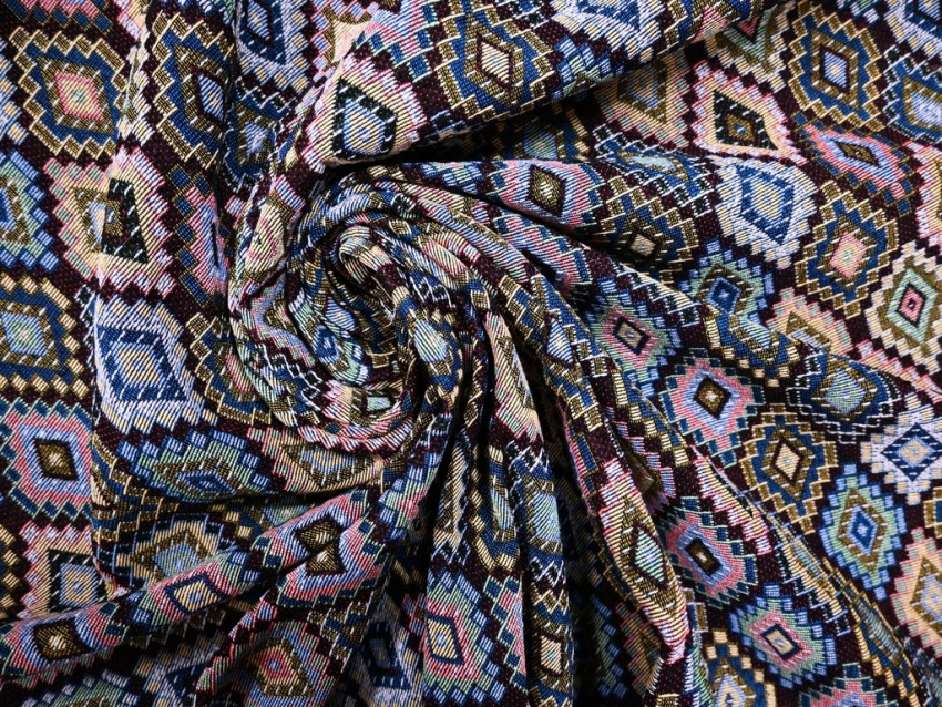 Este gobelino con estampado tropical de 330 g/m² es perfecto para confeccionar chalecos de trajes regionales. Con un ancho de 140 cm, su resistencia y diseño único lo hacen ideal para resaltar prendas típicas.