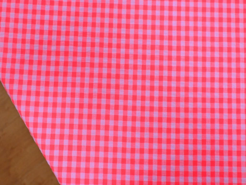 Este tejido vichy seersucker en color rosa neón es una propuesta vibrante y ligera para tus creaciones más alegres. Con un diseño clásico de cuadros pequeños y un acabado ligeramente arrugado, este seersucker destaca por su textura, fluidez y caída natural.