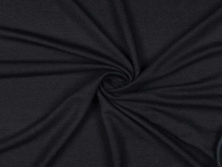 Jersey TENCEL™ Modal negro, extra suave y fluido, con cuerpo medio (215 g/m²). Ideal para camisetas, vestidos, ropa interior y prendas sostenibles de máxima comodidad. Transpirable, elástico y con caída elegante.