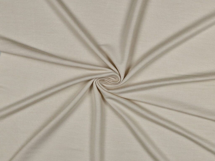 Jersey TENCEL™ Modal beige, suave, ecológico y con caída fluida. Ideal para camisetas, ropa interior, prendas infantiles o básicas. Gramaje medio de 215 g/m². Fácil de coser y muy cómodo.