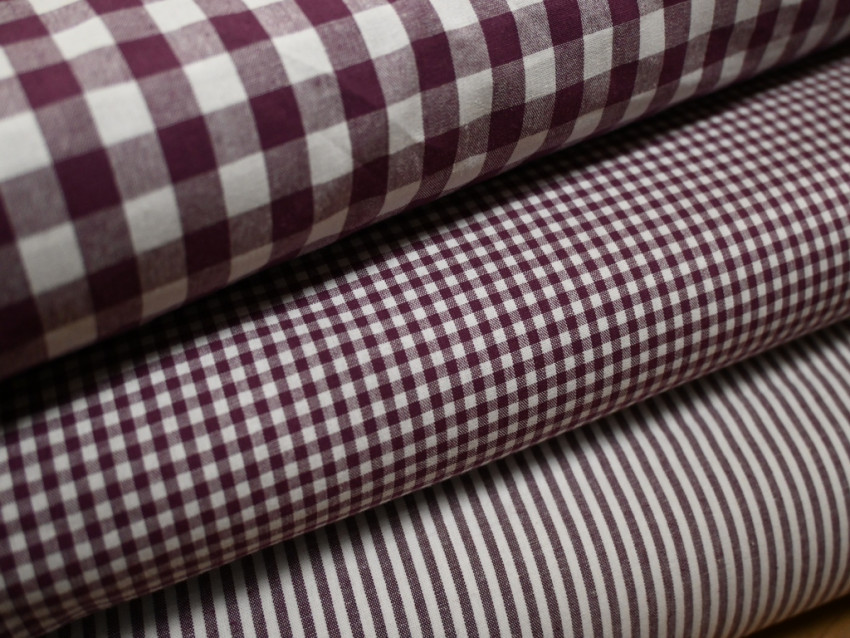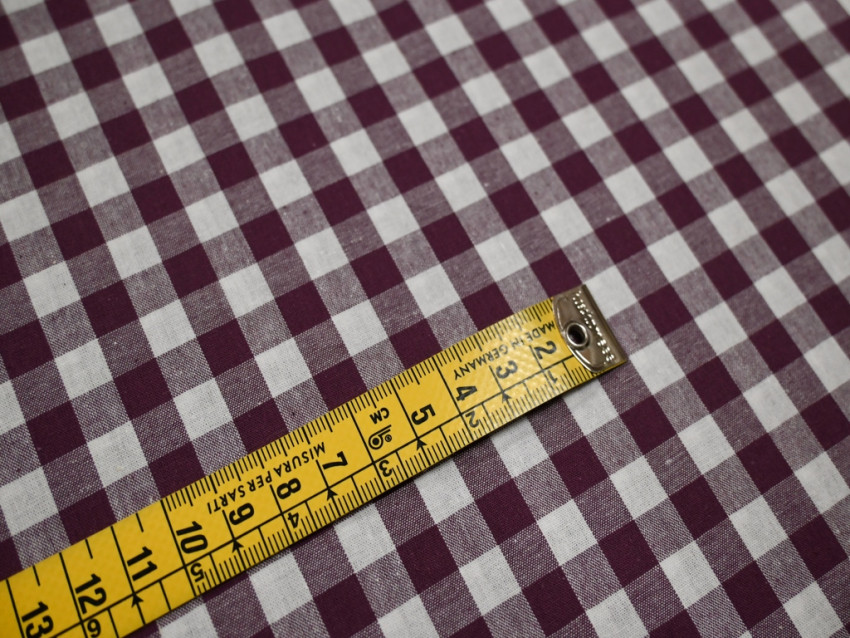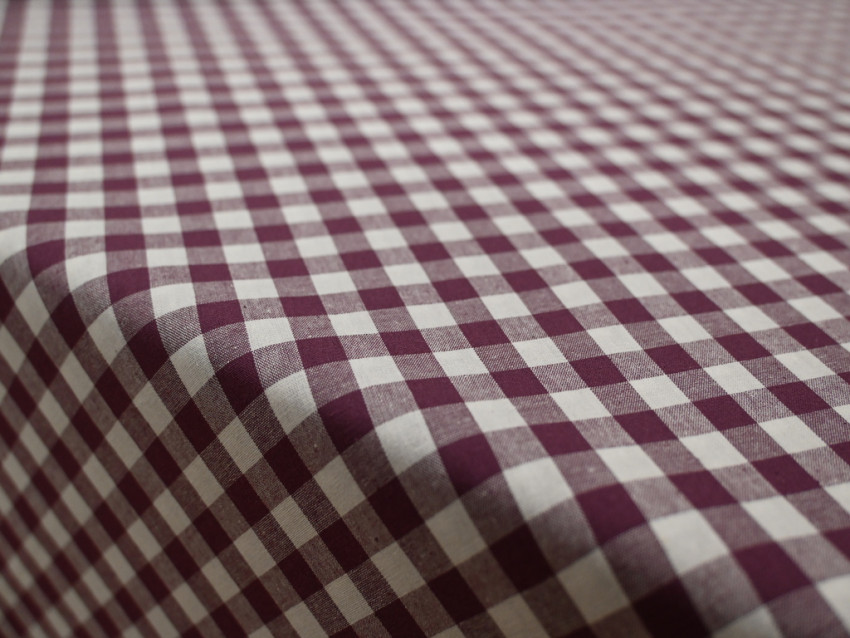 Tela vichy en tonos burdeos de 100% algodón y 110 gr/m².