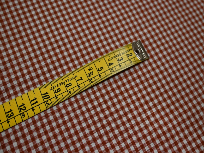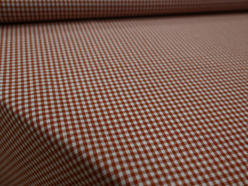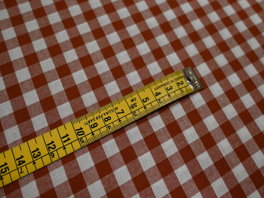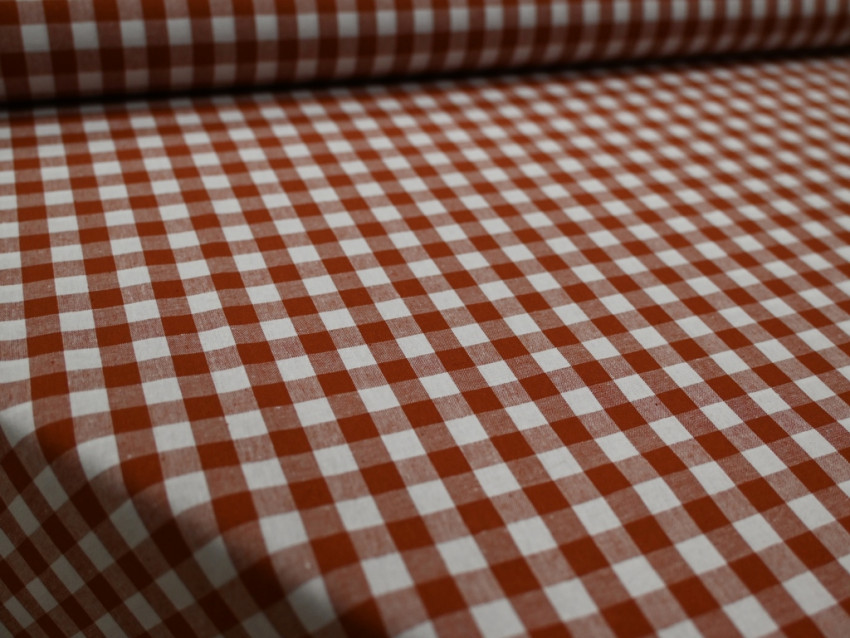 Tela vichy en tonos caldera y blanco, 100% algodón de 110 gr/m².