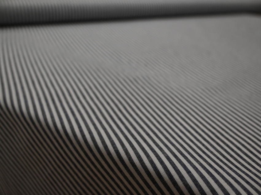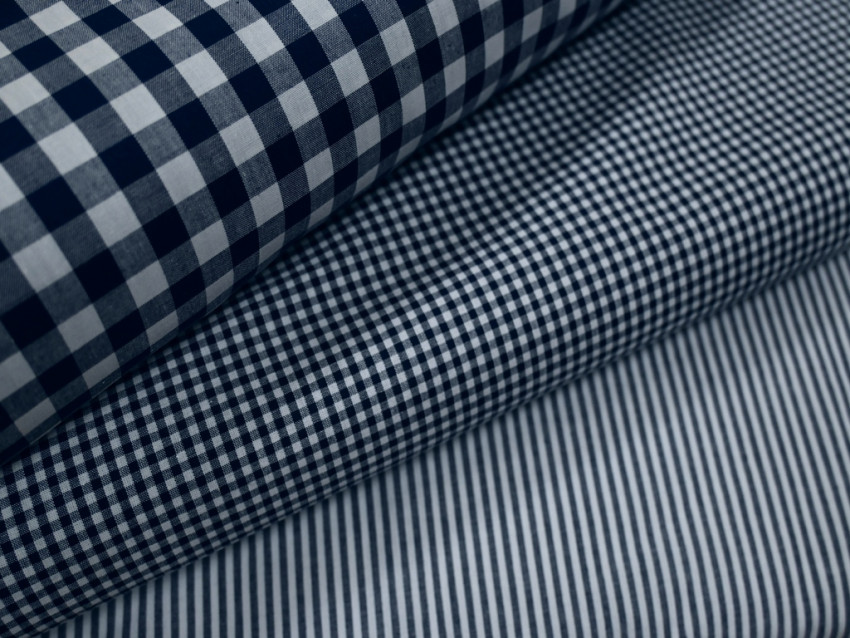 Vichy de rayas finas (0,3 cm): Las rayas finas en marino y blanco son ideales para detalles de confección, como puños, bolsillos o accesorios, o para combinar con los cuadros en un solo proyecto. Esta tela aporta una estética discreta y refinada.