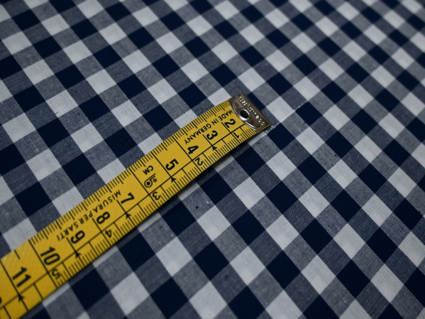 Tela vichy en tonos marino y blanco, 100% algodón de 110 gr/m².