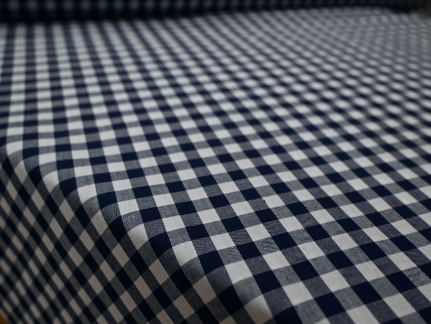 Vichy de cuadros medianos (0,27 cm): Con cuadros medianos, esta tela es perfecta para prendas de vestir como camisas, vestidos y blusas, ofreciendo un look atemporal y elegante. El marino y blanco se adaptan fácilmente a cualquier estilo.
