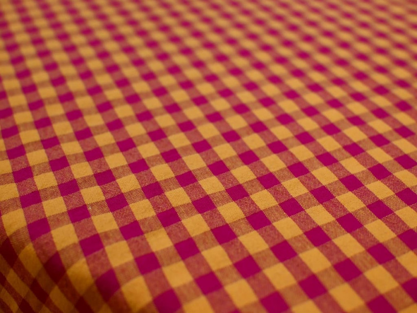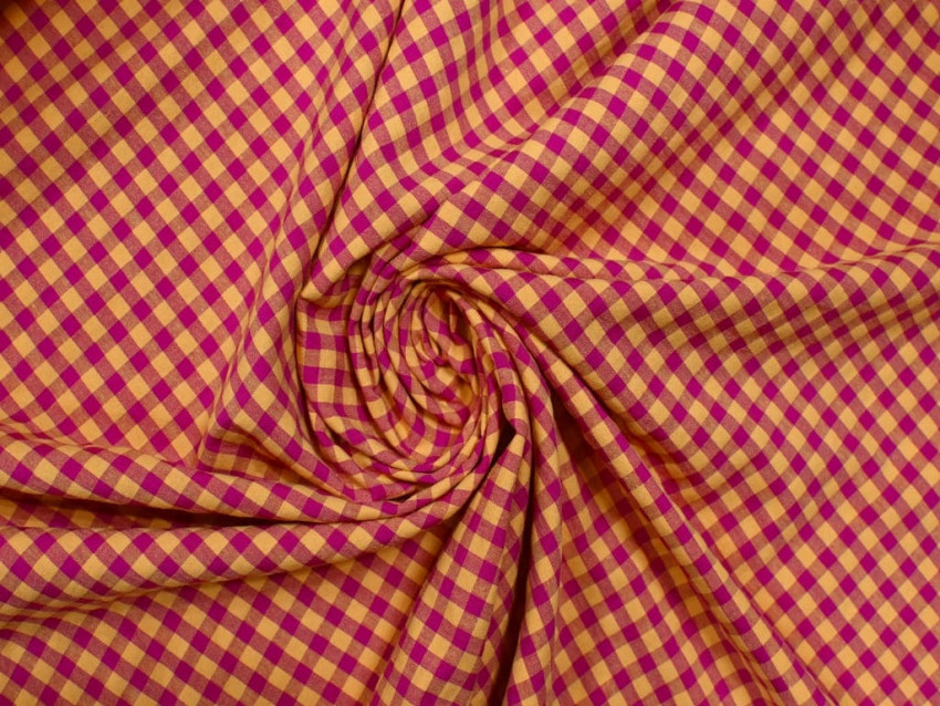 ¡Dale un toque clásico y fresco a tus creaciones con este tejido Vichy Seersucker en vibrantes tonos magenta y mostaza!