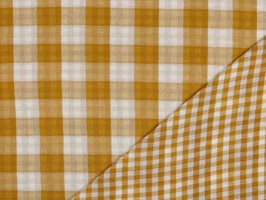 Esta muselina de cuadros en color ocre es un básico reinventado: aporta calidez y carácter a cualquier proyecto de costura, con el confort y la ligereza que exige la moda actual, tanto infantil como adulta.