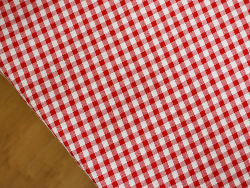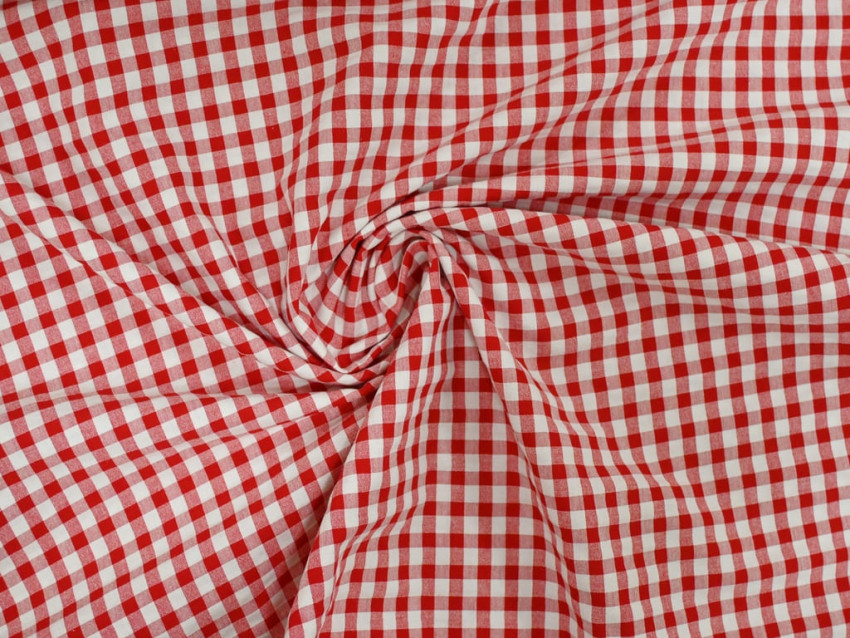 Tejido vichy seersucker blanco y rojo de 150 g/m², mezcla de algodón y poliéster. Ligero, fresco y con relieve arrugado característico que no necesita plancha. Ideal para camisas, vestidos, moda infantil y decoración veraniega.